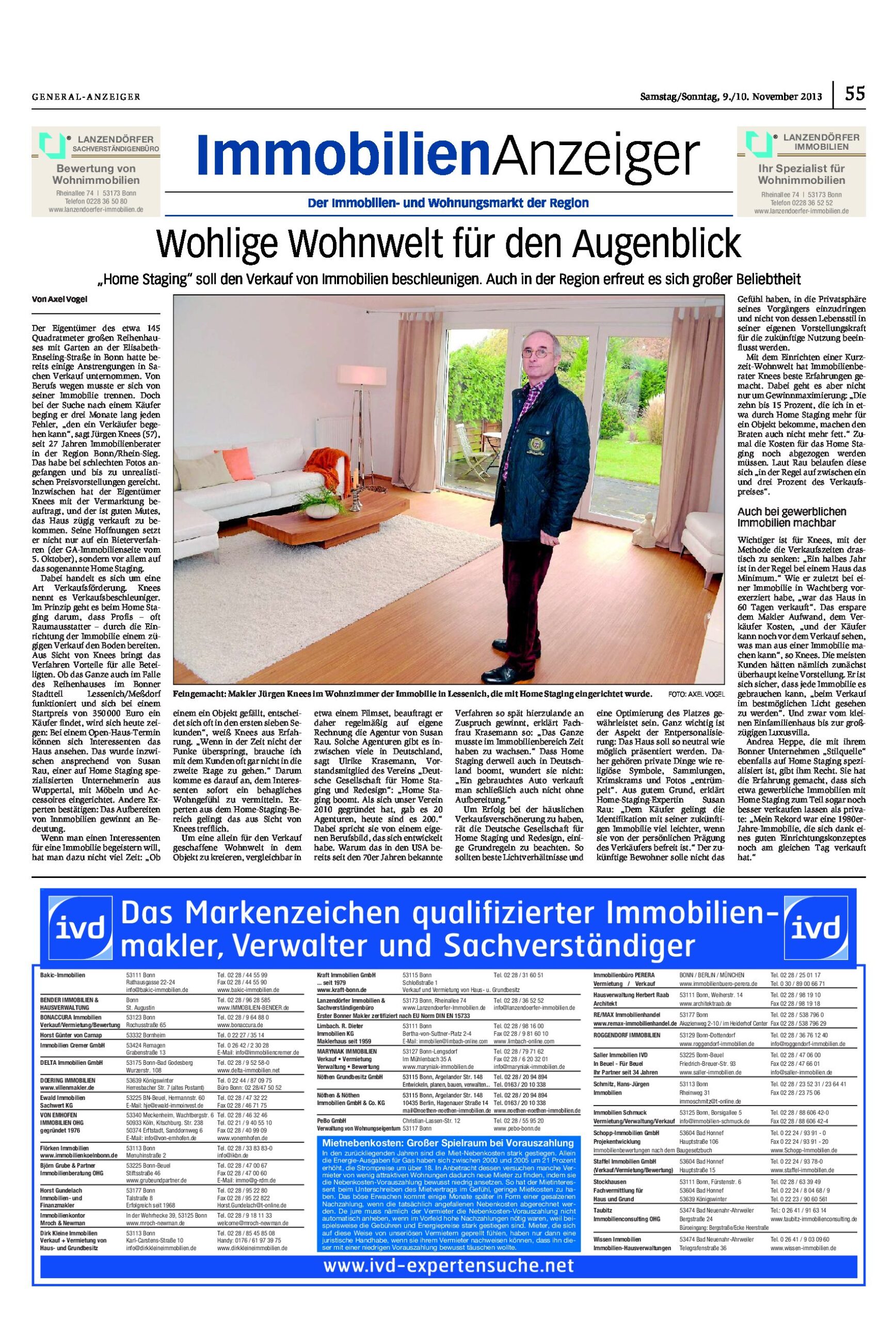 Ein aktuelles Beispiel ist ein Reihenhaus im Bonner Stadtteil Lessenich/Meßdorf, das mit einem Startpreis von 350.000 Euro angeboten wird. Für den Open-Haus-Termin wurde das Objekt von Susan Rau, einer auf Home Staging spezialisierten Unternehmerin aus Wuppertal, professionell eingerichtet. Ob sich dadurch schneller ein Käufer findet, wird sich zeigen – die Voraussetzungen dafür sind jedenfalls deutlich verbessert.